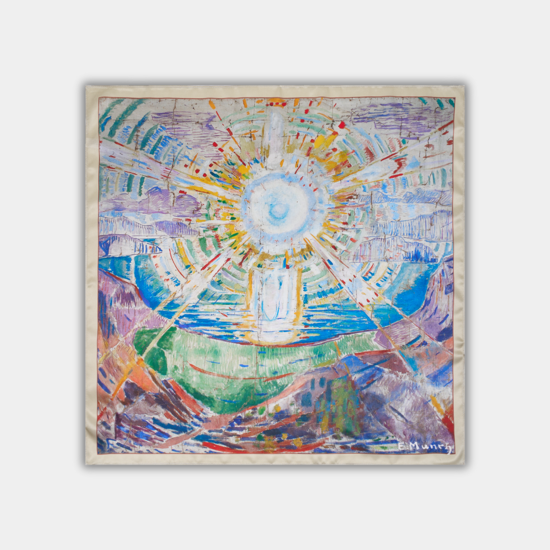 Silkeskjerf med Edvard Munchs mesterverk – en kombinasjon av kunst og eleganse. Edvard Munch er...