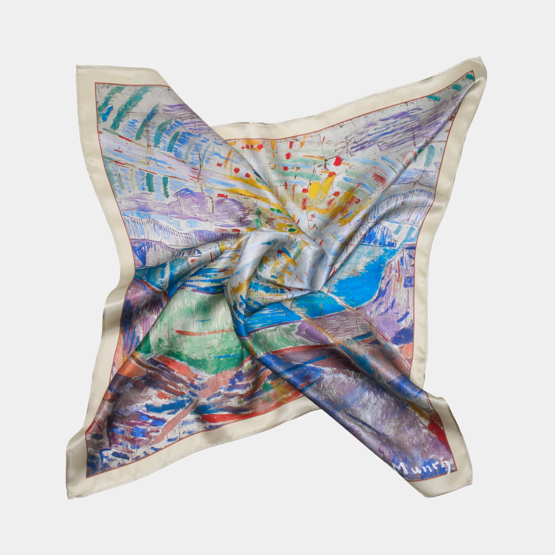 Et silkeskjerf med Edvard Munchs maleri – din elegante og luksuriøse stilaksent. Se fortryllende ut!