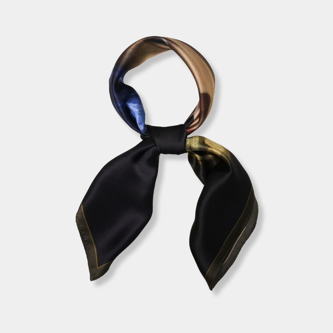 Johannes Vermeer er en av barokkens mest berømte kunstnere, kjent for sitt subtile spill mellom lys og skygge, og for sine intime skildringer av hverdagslivet. Hans malerier, som fanger øyeblikk av harmoni og skjønnhet, får nytt liv i luksuriøse silkeskjerf.